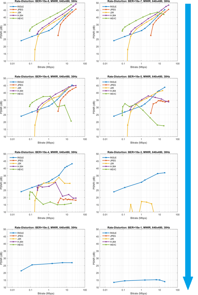 - JPEG2000 – MATLAB version with default parameters. Compression ratios are varied.